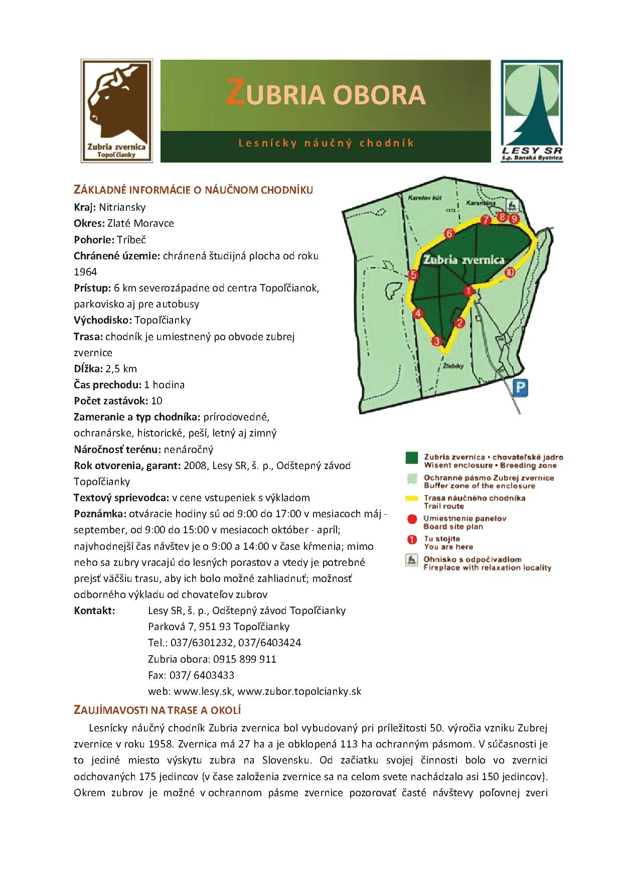 Len na jedinom mieste na Slovensku, v krásnych dubových lesoch južného Slovenska pri Topoľčiankach, máte možnosť na vlastné oči vidieť, prípadne si môžete aj odfotiť, zubra európskeho – najväčšieho európskeho cicavca, „bratranca“ známejšieho amerického bizóna.