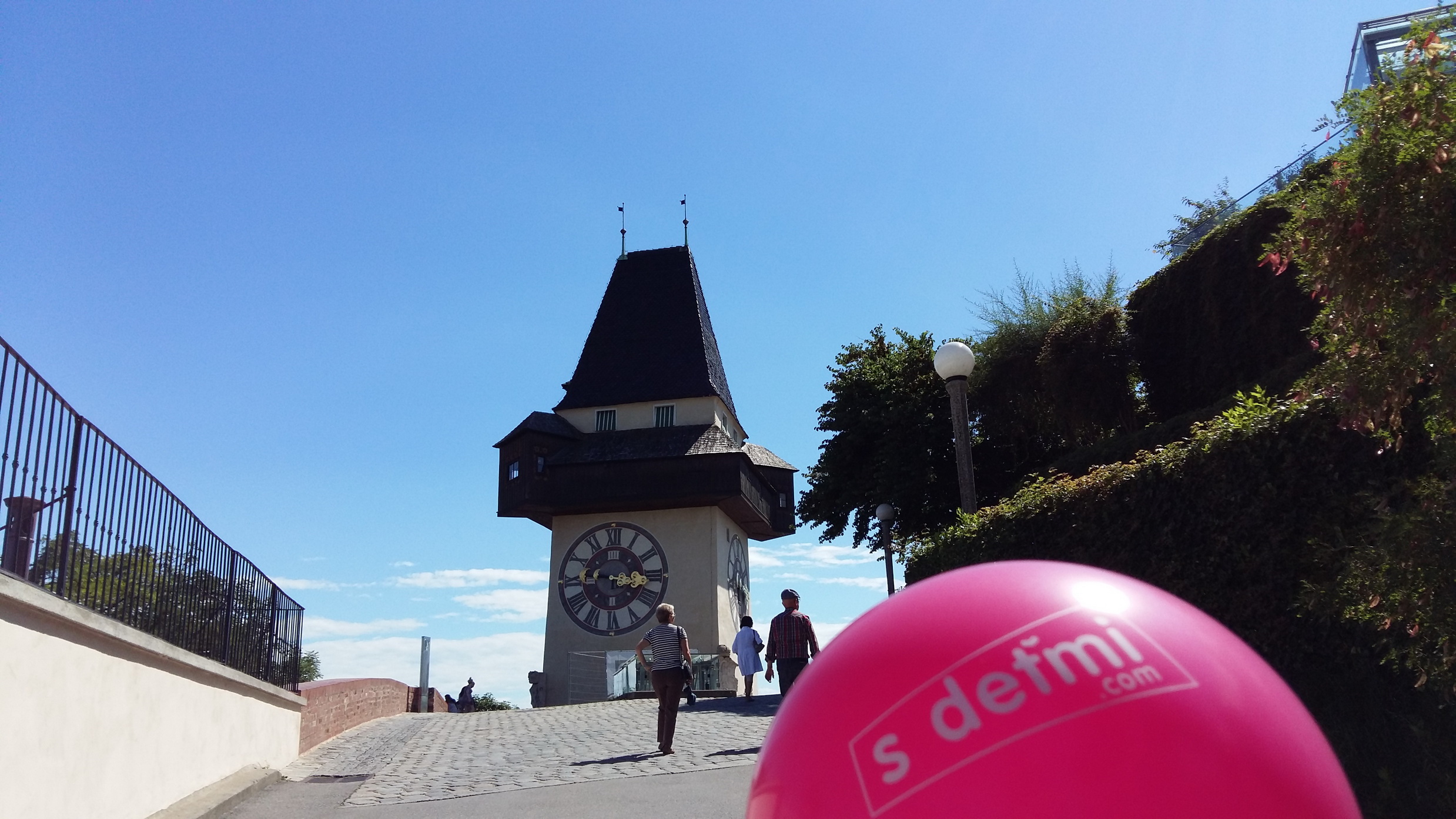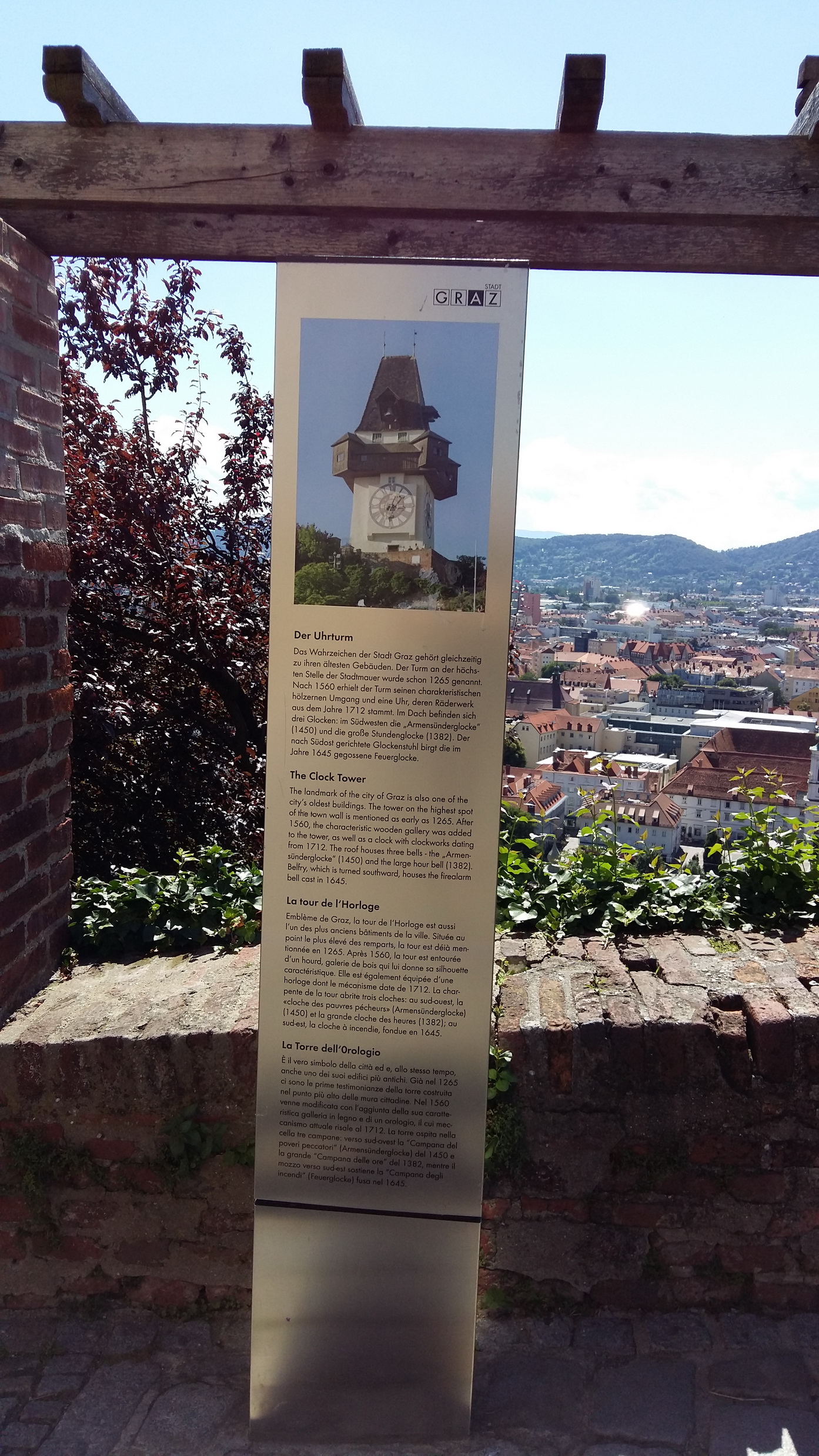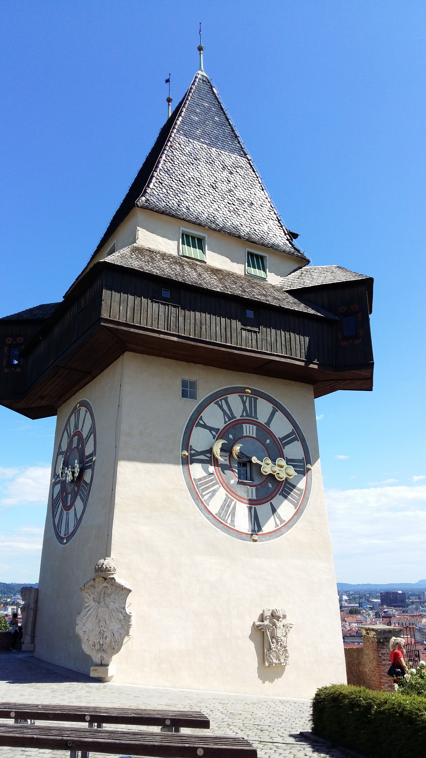 Dvadsaťosem metrov vysoká hodinová veža je na ceste do kopca k hradnej pevnosti Schlossberg, zapísanej v Guinnessovej knihe rekordov ako pevnosť, ktorú možno najťažšie dobyť. Zvláštnosťou hodín sú ručičky. Ak sa pozriete na ciferník celé hodiny totiž ukazuje veľká ručička a minúty malá.
