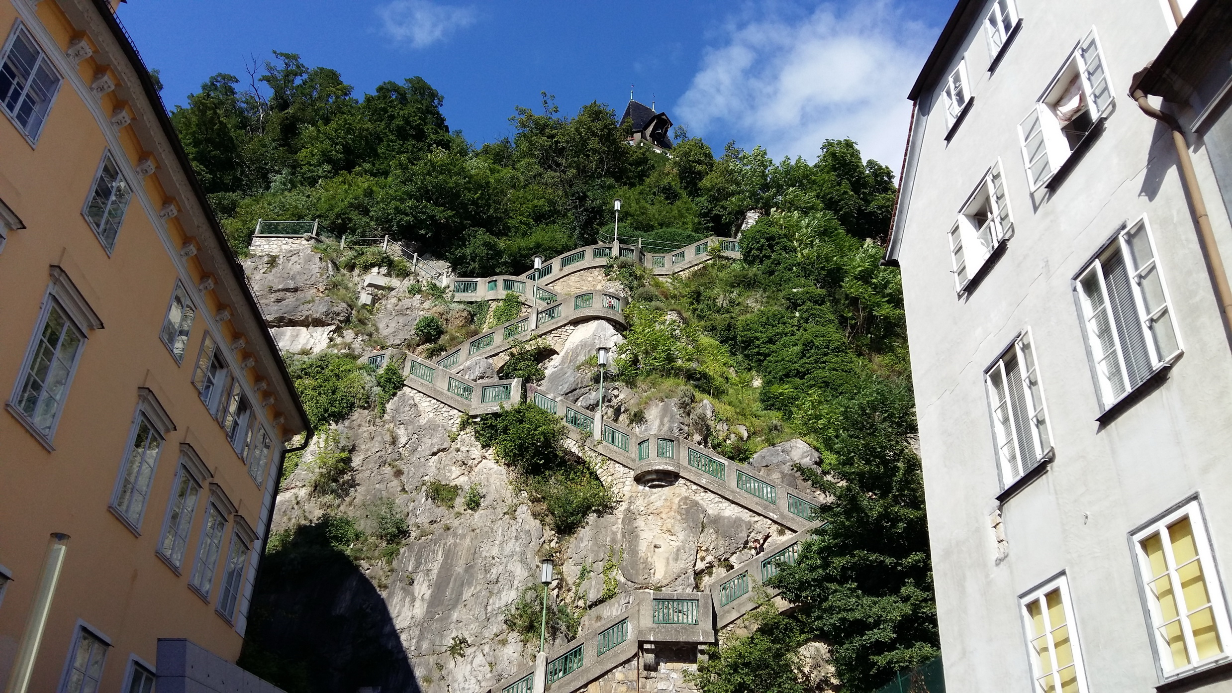 Graz (historický slovenský názov je Štajerský Hradec) je štatutárne mesto a hlavné mesto Štajerska a z Bratislavy trvá cesta cca 2hod 35min. So svojimi takmer 300 tis. obyvateľmi je 2. najväčším mestom Rakúska a je taktiež plné študentov. Priamo uprostred mesta sa týči Zámocký vrch - Schlossberg - zalesnený kopec, na ktorý sa dá vystúpiť. Z bývalej pevnosti na plošine nad mestom zostali viac - menej vcelku iba vežové hodiny, ktoré sa stali akýmsi starým znakom mesta
