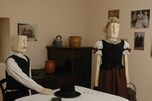 Etnografická časť stálej expozície prezentuje ľudový odev piatich odevných mikroregiónov levického okresu – „čiľejkárski“, kozárovský, žemberovský, dolno-pohronský a dolno-poipliansky. Ten je prezentovaný na figurínach umiestnených na pódiu. Samostatné miesto v expozícii majú ručníky a čepce z odevných mikroregiónov okresu a ľudové šperky, ktoré sa nosili na sviatočnom odeve, či už vo väčšej alebo menšej miere. V expozícii sa nachádzajú aj šperky, ktoré nepochádzajú z nášho regiónu, ale od zakladateľa múzea Jozefa Nécseyho a pochádzajú z iných častí Slovenka i južnej Európy. Taktiež sú tu šperky novodobé, ktorých výrobcovia sa inšpirovali tradičnými motívmi. Vo výstupnej časti stálej expozície je vytvorený priestor pre „Predmet mesiaca“. Celá expozícia je doplnená dobovými fotografiami.