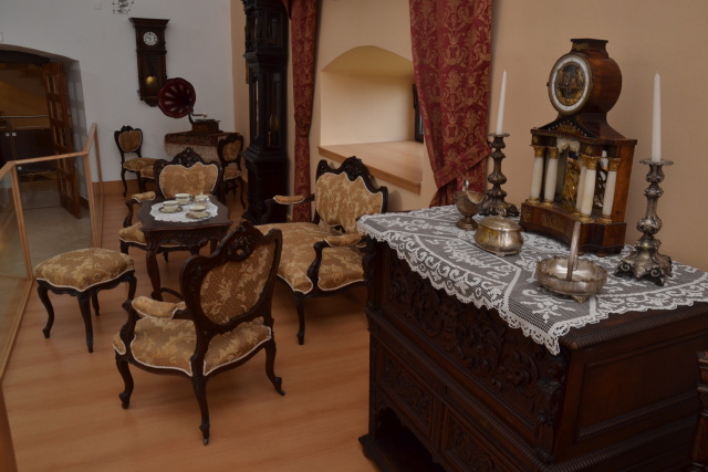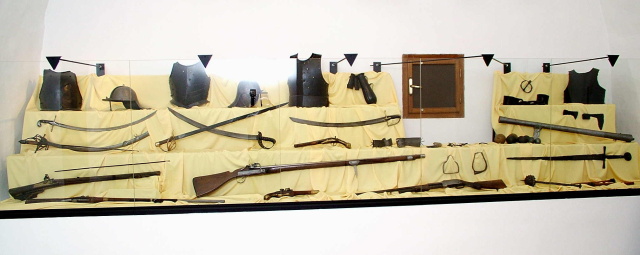 V prvej miestnosti prostredníctvom faktografických a obrazových údajov sú zachytené najvýznamnejšie medzníky v histórii hradu od prvej písomnej správy z roku 1318 až po rok 1958, keď sa sídlom múzea stáva hradný areál. V druhej časti je nainštalovaná malá "galéria " palných a chladných zbraní, časť konského postroja a jednotlivé časti zbroja, ktoré používali počas bohatej histórie vojská nachádzajúce sa na hrade.
