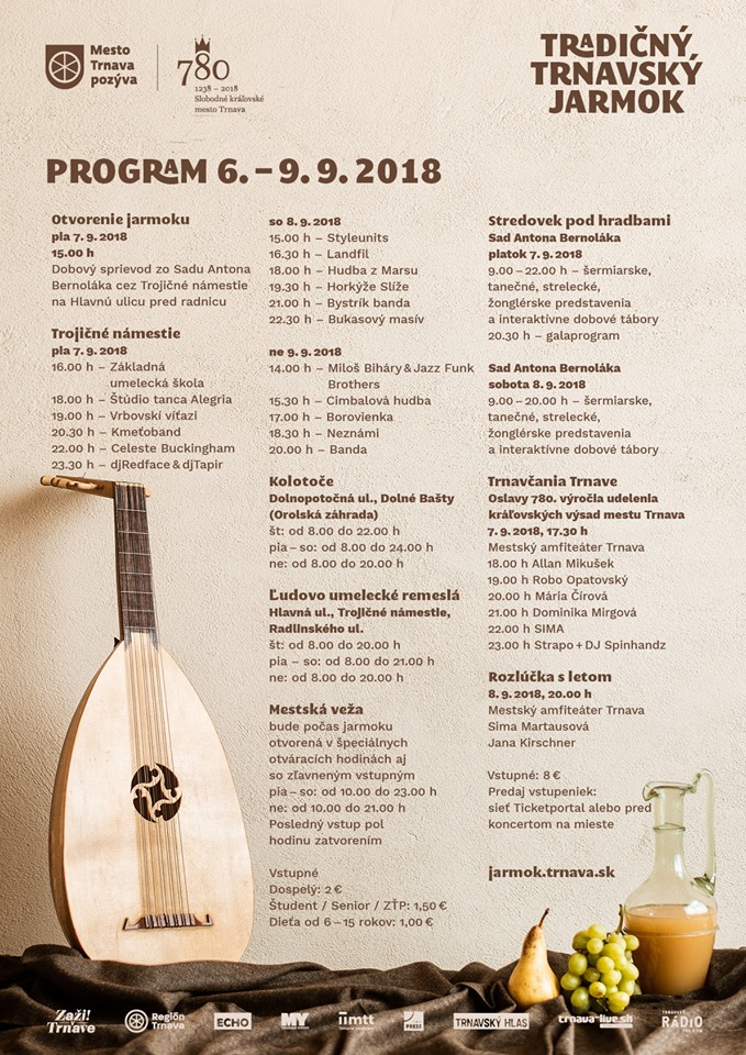 Súčasťou trnavského jarmoku budú Oslavy 780. výročia udelenia kráľovských výsad mestu Trnava, známe aj pod názvom ako Trnavčania Trnave, ktoré odštartujú 7. septembra o 17.30 hod. v priestoroch mestského amfiteátra. Na návštevníkov bude čakať bohatý program. Ako informujú organizátori podujatia, vstupenky bude možné zakúpiť aj pred koncertom.