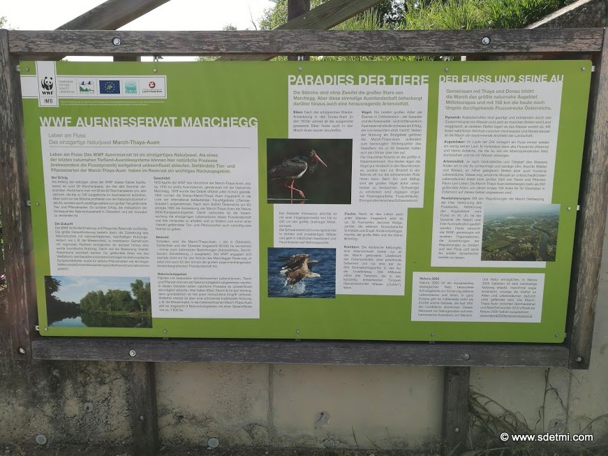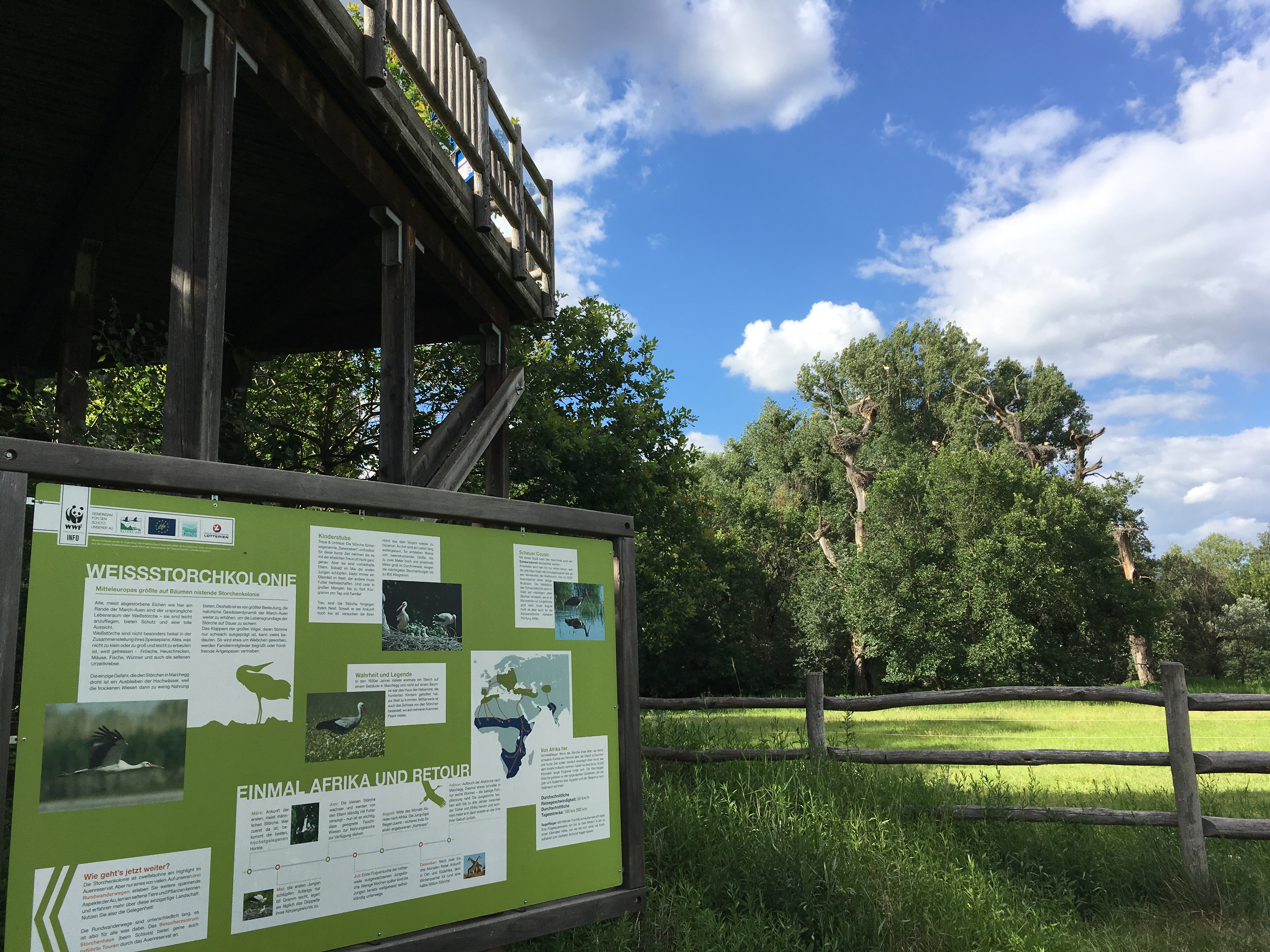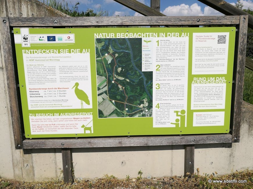 Hneď pred vstupom do rezervácie vás privítajú informačné tabule s popisom trás v rezervácii, ako aj informáciou, ktoré zvieratá a rastliny v parku môžete stretnúť. Už pri vchode vás očaria hniezda po stromoch, a všade preletujúce bociany. Na výber máte tri okruhy: