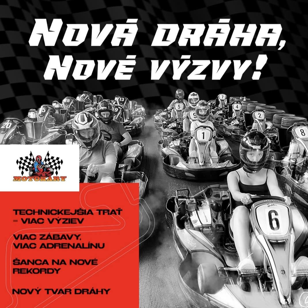 Moderná motokárová hala na Sliači. K dispozícií až 24 motokár značky Sodi. Nové prilby, bar s výhľadom na trať.