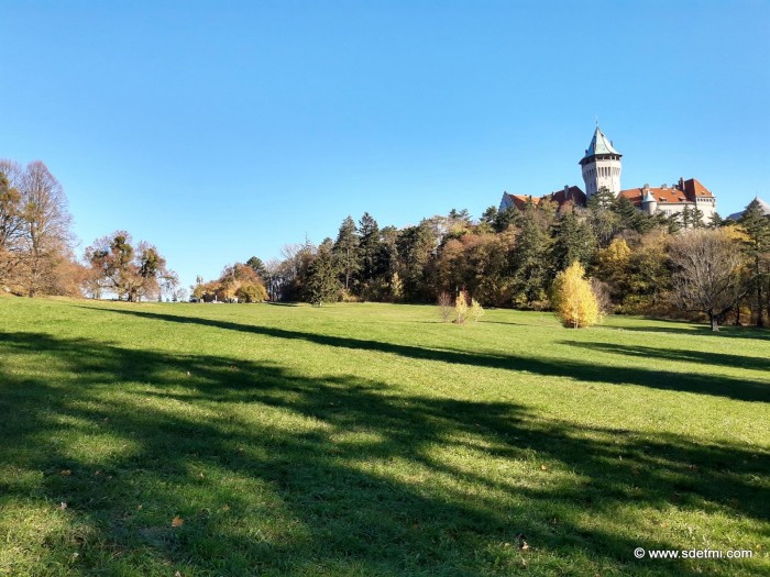 Ciest na Záruby vedie viac, my sme si však vybrali odporúčanú pre rodiny s deťmi, zo Smoleníc. Zaparkovali sme pod zámkom (pri miestnom cintoríne), odtiaľ sme sa už vybrali peši po asfaltke až tesne pod Smolenický zámok. Keďže zámok sme už v minulosti navštívili, tentokrát sme si ho len rýchlo odfotili, a turistické značenie pod zámkom nás naviedlo na modrú turistickú trasu.