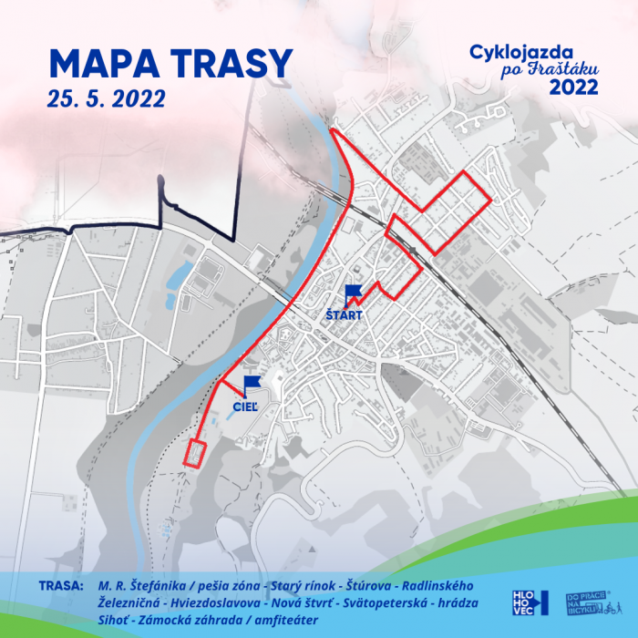 Po štarte sa vydáme ulicou Starý rínok cez ulicu Radlinského a popri železničnej stanici sa vydáme na Novú štvrť, odkiaľ pokračujeme po Svätopeterskej až na hrádzu. Ku koncu nebude chýbať ani otočka na Sihoti, odkiaľ bicyklový sprievod nasmerujeme do Zámockej záhrady pri amfiteáter, kde zaparkujeme naše bicykle. Pre všetkých účastníkov cyklojazdy tu budú ako vždy pripravené malé darčeky.