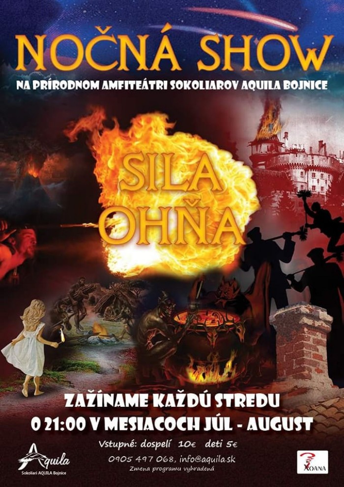 Sokoliari Aquila z Bojníc vás srdečne pozývajú na tradičné nočné predstavenie, ktoré nesie názov Sila Ohňa