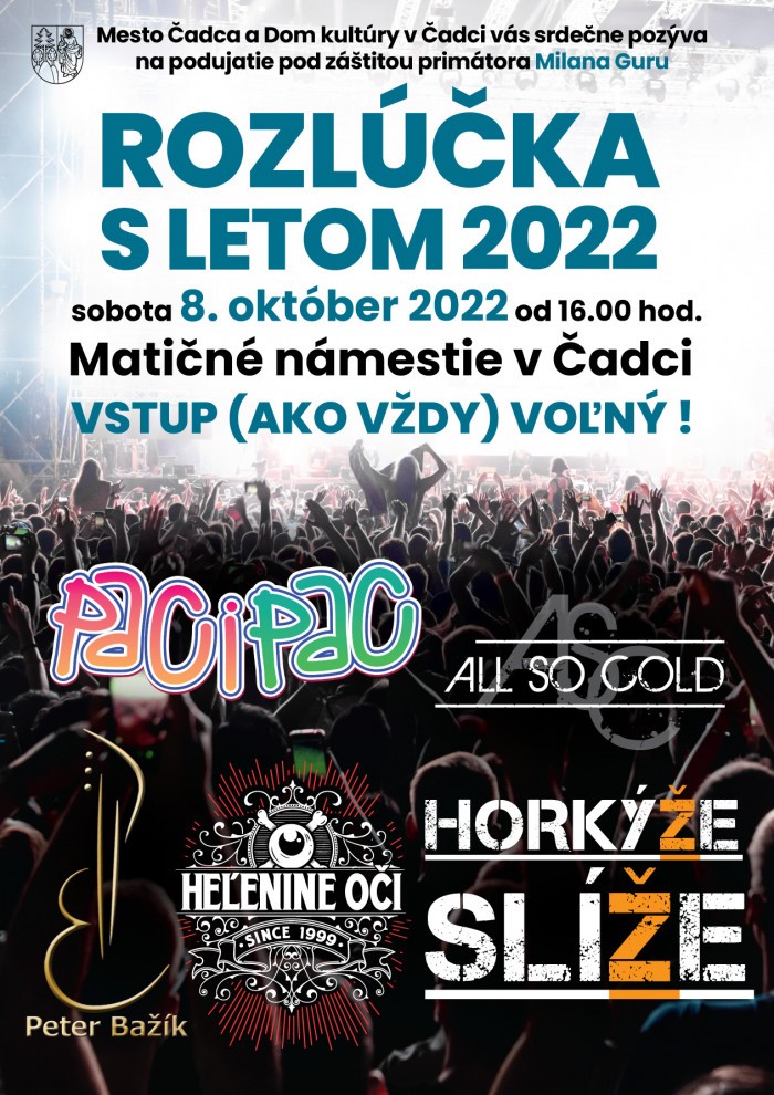 V sobotu 8. októbra 2022 sa vidíme s rukou hore pred Domom kultúry v Čadci v skvelej hudobnej partii.