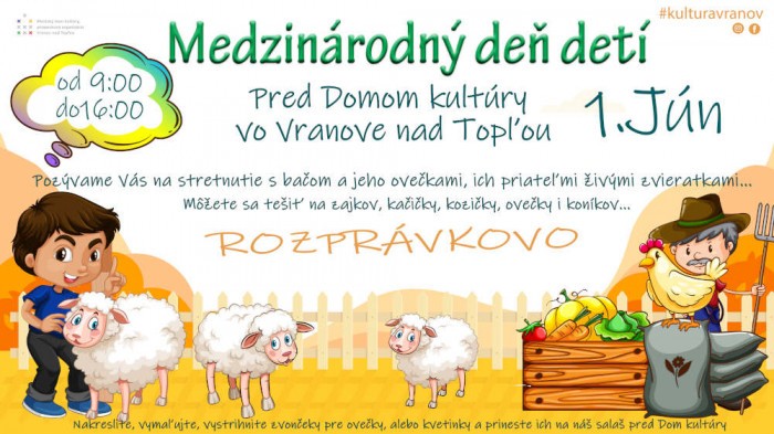 Milé deti, rodičia a učitelia, pri príležitosti MDD Vás pozývame do ROZPRÁVKOVA. Prenesme sa spolu na Saláš, na stretnutie s bačom a jeho ovečkami, ich priateľmi živými zvieratkami. Môžete sa tešiť na zajkov, kačičky, kozičky, ovečky i koníkov... Spolu s nimi oslávime sviatok detí. Nakreslíte, vymaľujte, vystrihnite, alebo vytvarujte ZVONČEKY PRE OVEČKY a prineste ich na Saláš pred Dom kultúry 1. júna 2023.