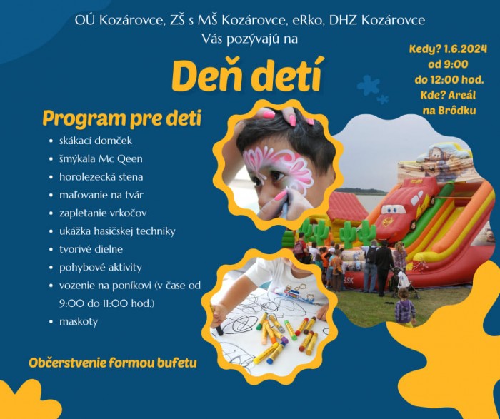 Čakať na vás budú rôzne atrakcie, maskoty, tvorivé dielne, pohybové aktivity, hasiči a tiež poník.