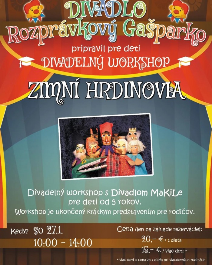 Divadelný workshop pre deti od 5 rokov (mladšie po konzultácii), ktorého vyústením je krátke vystúpenie.
