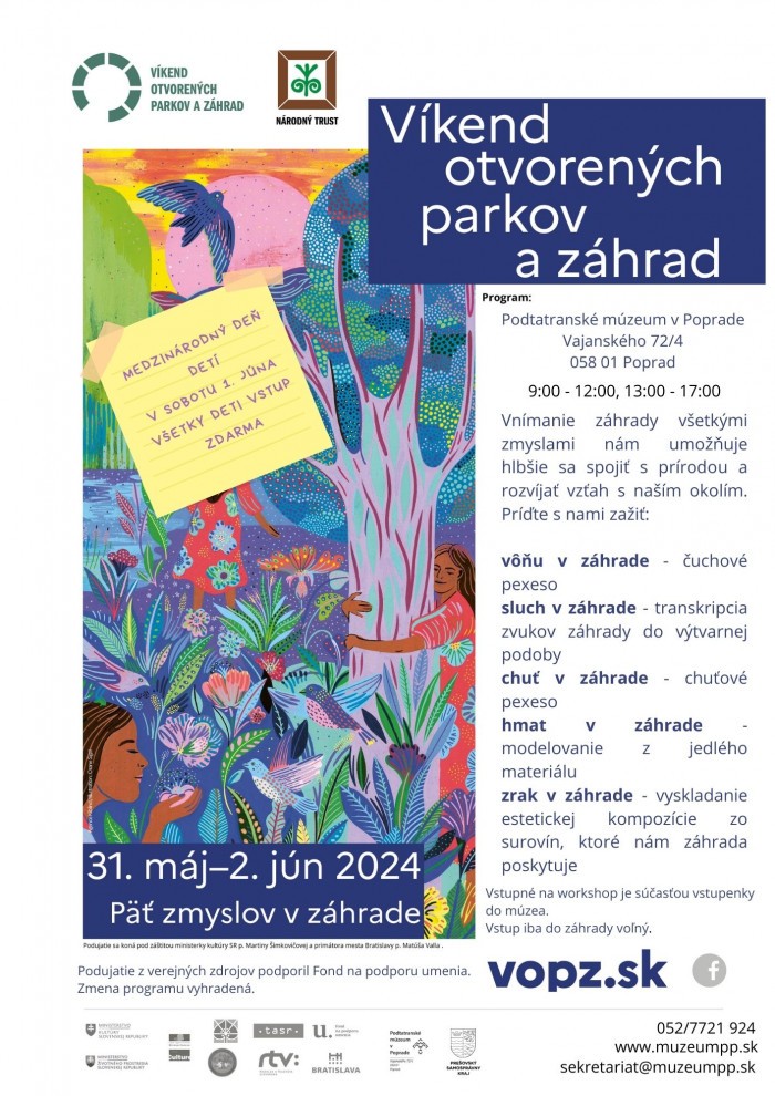 Medzinárodné podujatie Víkend otvorených parkov a záhrad 2024, ktorého cieľom je priblížiť krásu našich parkov a záhrad, ako aj zdôrazňovať myšlienky ich aktívnej ochrany, kvalitnej údržby a zmysluplného využívania.