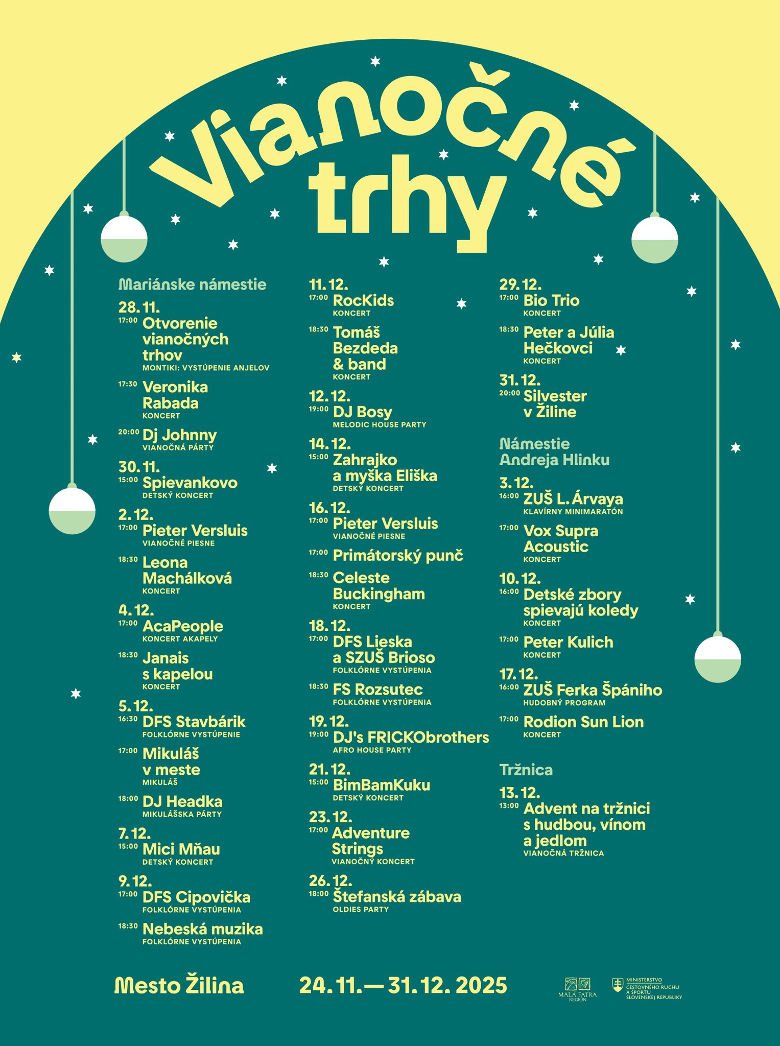Veríme, že vianočnú atmosféru na námestiach využijete na stretávanie sa s rodinou, priateľmi, či kolegami z práce a že kultúrny program už len dodá týmto vzácnym chvíľam ešte viac pohody a radosti.