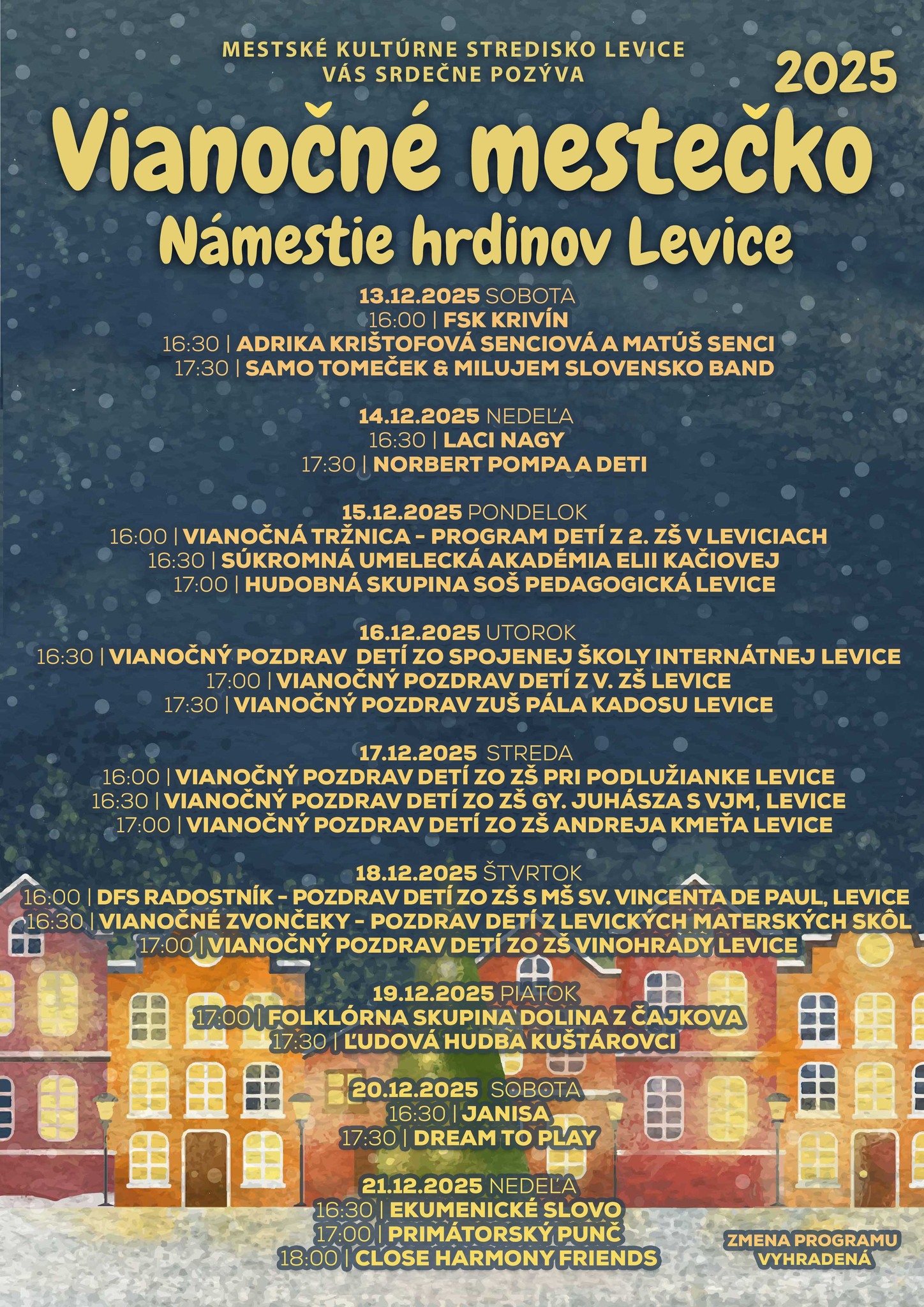 Príďte si užiť čarovný čas Vianoc priamo v centre Levíc. Tešíme sa na vás!